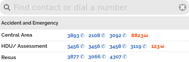 bleeps, emails, fax numbers, web links, notes. - Contact categories per department, include in pages.