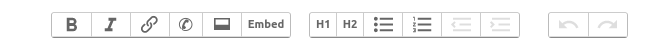 - The next 2 buttons H1 and H2 create section headings, level 1 (main heading) or level 2 (subheading/subsection). Sections can be open or collapsed, this can be configured by selecting the checkboxes under the text area. A user can click on the heading to toggle the section open/collapsed.