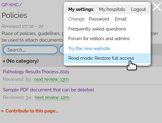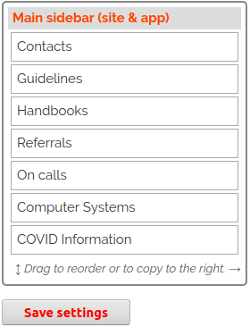 In some pages, you may have an additional "module" like a contacts directory, or a versioned guidelines table, or a shared calendar, or a feedback form. Editors can add some of these themselves, or you can tell us and we'll add them for you. It is up to you, talk to us when you need something.